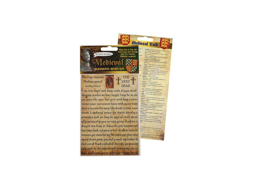 Balíček magnetiek- Stredoveké slová sa dodáva s informačnou kartičkou, na ktorej je vysvetlenie jednotlivých stredovekých slov.Balíček magnetiek - Stredoveké slová obsahuje 120 magnetiek/slov používaných v stredovekých časoch.