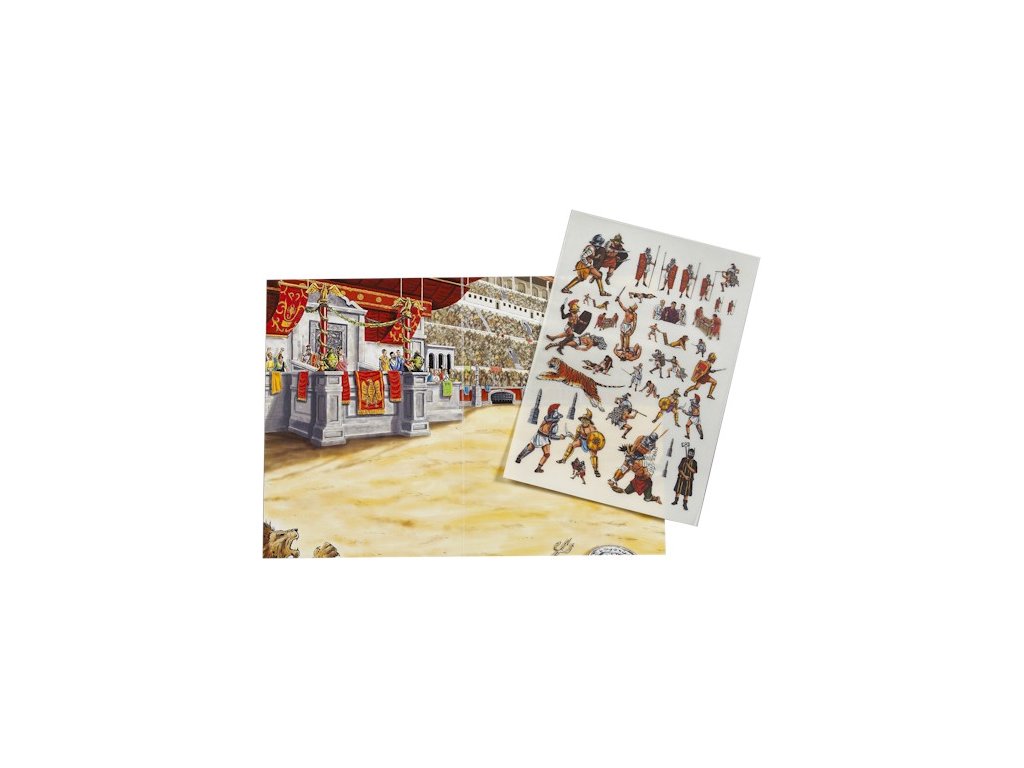 Tento balíček samolepiek - rímsky gladiátor obsahuje A4 farebný obrázok rímskeho kolosea - arény, kde zápasili gladiátori a samostatný list s 30 samolepkami.