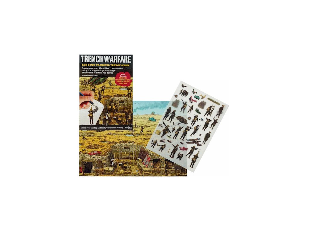 Tento balíček samolepiek - zákopová vojna obsahuje A4 farebný obrázok bojovej scény zo zákopovej vojny z I. Svetovej vojny a samostatný list so 45 samolepkami.