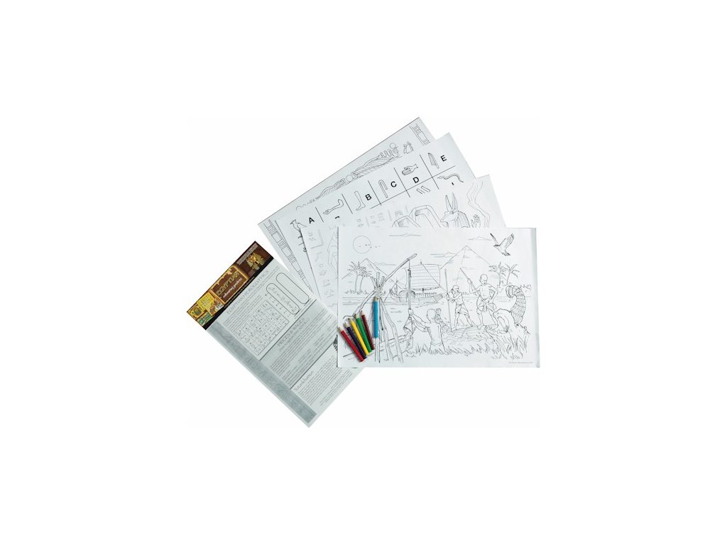 Sada 4 ks A3 farebných plagátov s obrázkami zo starovekého Egypta sa dodáva spolu so 6 ceruzkami. Balenie obsahuje aj informačný list a krížovku.