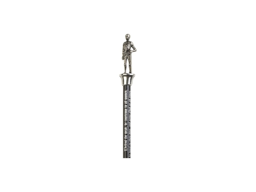 Ozdobný vršok - figúrka rytiera je vyrobený z bezolovnatého cínu a dodáva sa so 17, 5 cm dlhou čiernou ceruzkou s potlačou motta rytierstva „Bráň slabých, Buď zdvorilý ku všetkým ženám, Buď lojálny ku kráľovi a Slúž Bohu naveky“.