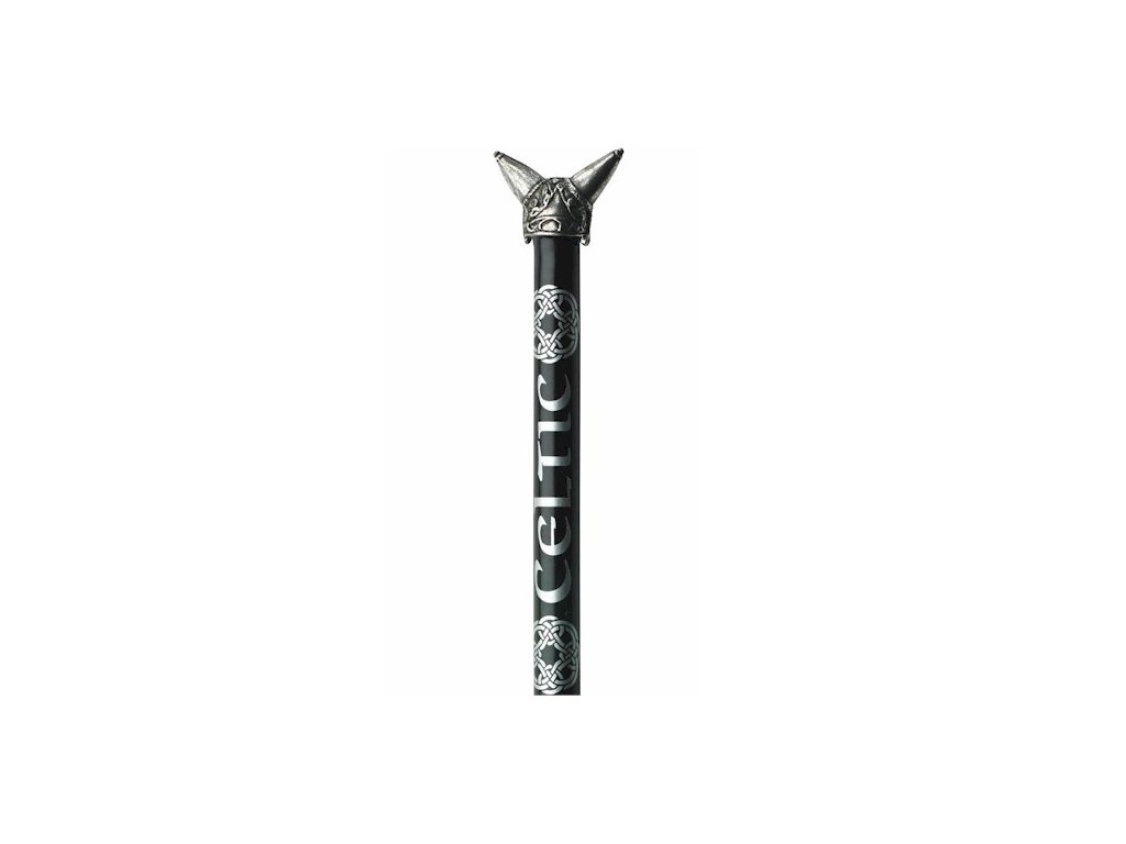Tento ozdobný vršok na ceruzku - keltská prilba je vyrobený z cínu a dodáva sa spolu s čiernou ceruzkou s potlačou slova Celtic a prepletaného vzoru na nej.