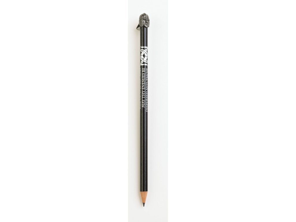 Ceruzka a Cínový ozdobný vršok - prilba pešiaka je originálna kópia Staffordshireského pešiaka bojujúceho za kráľovstvo Mercia v 7. a 8. storočí n. l.