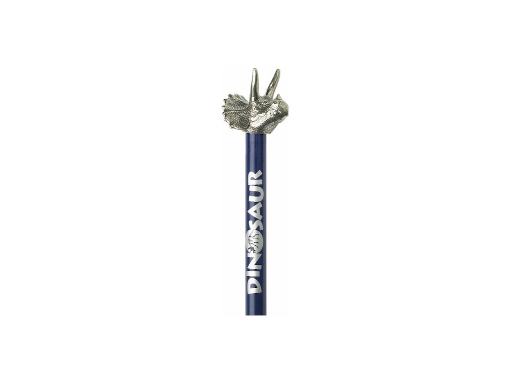 Tento ozdobný vršok na ceruzku Triceratops je vyrobený z bezolovnatého cínu a dodáva sa na 18 cm dlhej červenej alebo modrej ceruzke s potlačou slova Dinosaur.