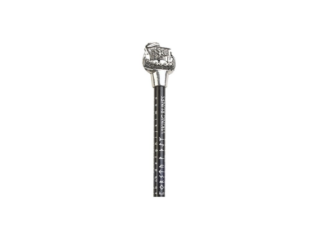 Je vyrobený z bezolovnatého cínu a dodáva sa spolu s čiernou ceruzkou s potlačou vikingskej runovej abecedy.
