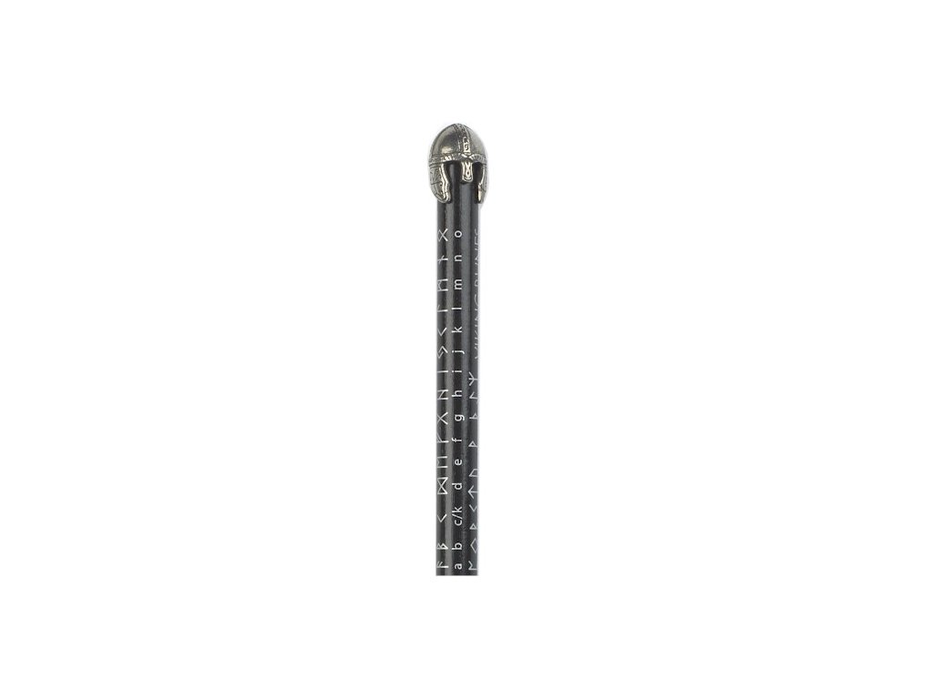 Cínový ozdobný vršok na ceruzku - vikingská prilba sa dodáva spolu s čiernou ceruzkou. Ceruzka je potlačená vikingskou runovou abecedou.