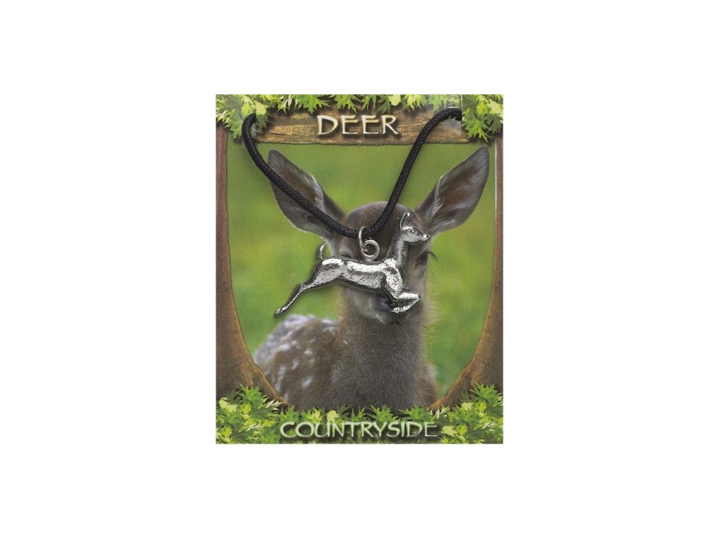 Tento prívesok - jeleň je vyrobený z bezolovnatého cínu a dodáva sa na povoskovanej šnúrke.
