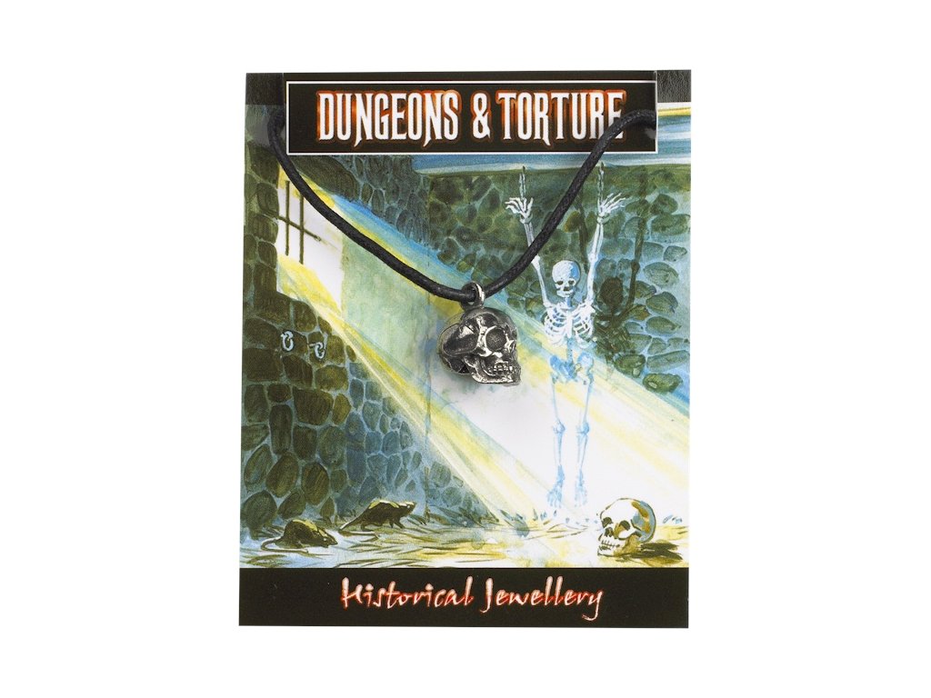 Cínový prívesok - lebka sa dodáva s povoskovanou šnúrkou. Na informačnej kartičke je popis kobky a ako v nich boli ľudia trestaní.