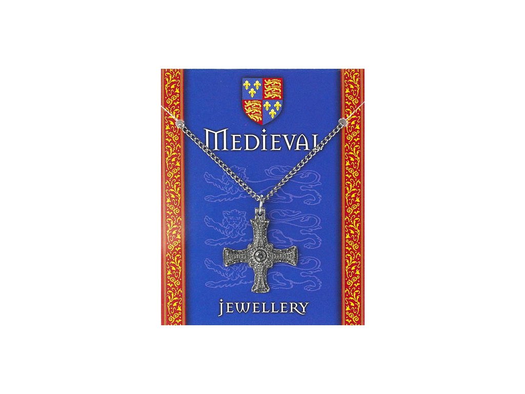 Cínový prívesok stredoveký krížik sa dodávana striebornej retiazke. Na zadnej strane informačnej kartičky je vysvetlenie dôležitosti náboženstva v starovekých časoch a v období Križiackych výprav.
