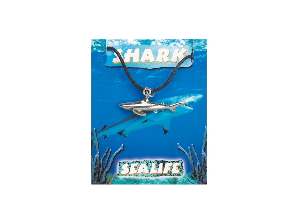 Cínový prívesok –žralok sa dodáva na povoskovanej šnúrke. Na zadnej strane informačnej kartičky je popis žraloka.