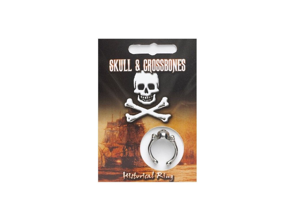 Tento prsteň - lebka s prekríženými hnátmi je vyrobený z bezolovnatého cínu.