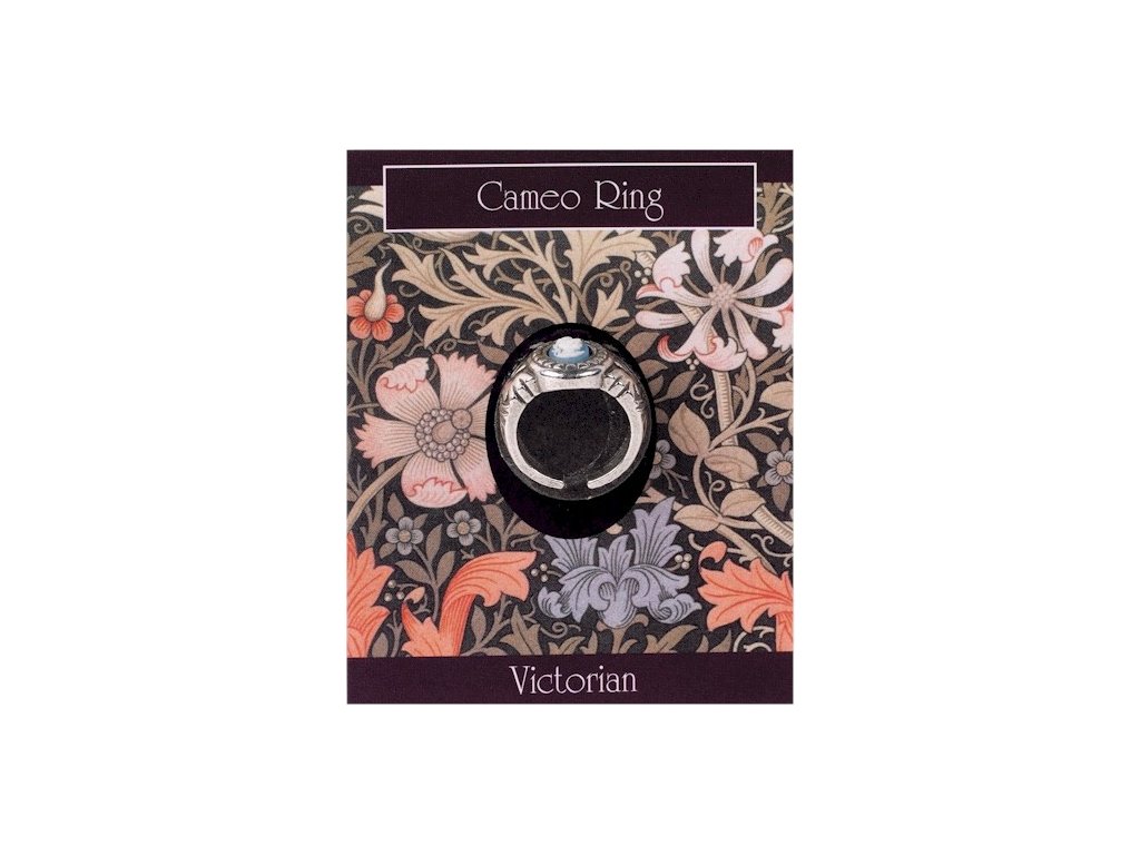Tento viktoriánsky prsteň je vyrobený z bezolovnatého cínu a dodáva sa s modrým emailom s podobizňou ženy a je zabalený do priehľadnej kapsuľky s informačnou kartičkou.