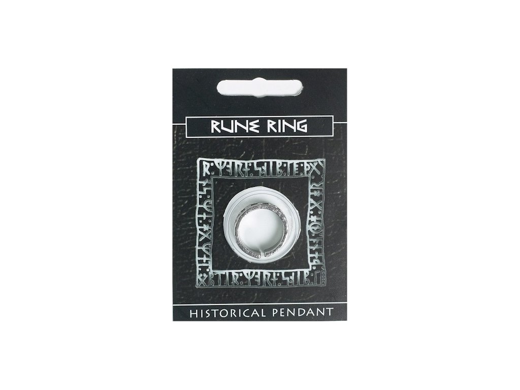 Cínový prsteň s vikingskými runami je zabalený do priehľadnej kapsuľky a dodáva sa spolu s informačnou kartičkou, na ktorej je vikingská runová abeceda s vysvetlením jednotlivých runových symbolov.