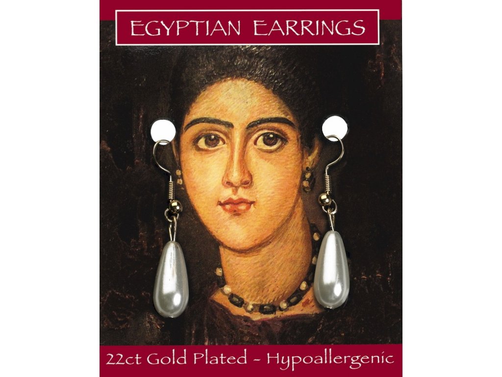 Pár egyptských perlových náušníc sa dodáva spolu s hypoalergickými náušnicovými háčikmi so zapínaním.