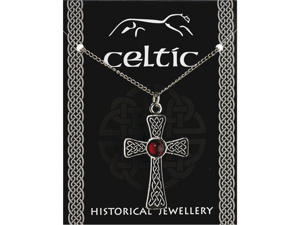 Keltský cínový prívesok - kríž s kameňom v strede kríža sa dodáva s postriebrenou retiazkou. Na zadnej strane informačnej kartičky je popis keltského umenia a význam symbolu kríža pre Keltov.