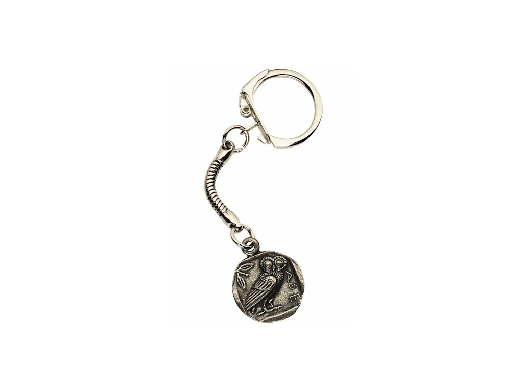 Cínová kľúčenka - kópia gréckej mince zo starogréckeho mesta Atény sa dodáva spolu s kvalitným krúžkom na kľúče.