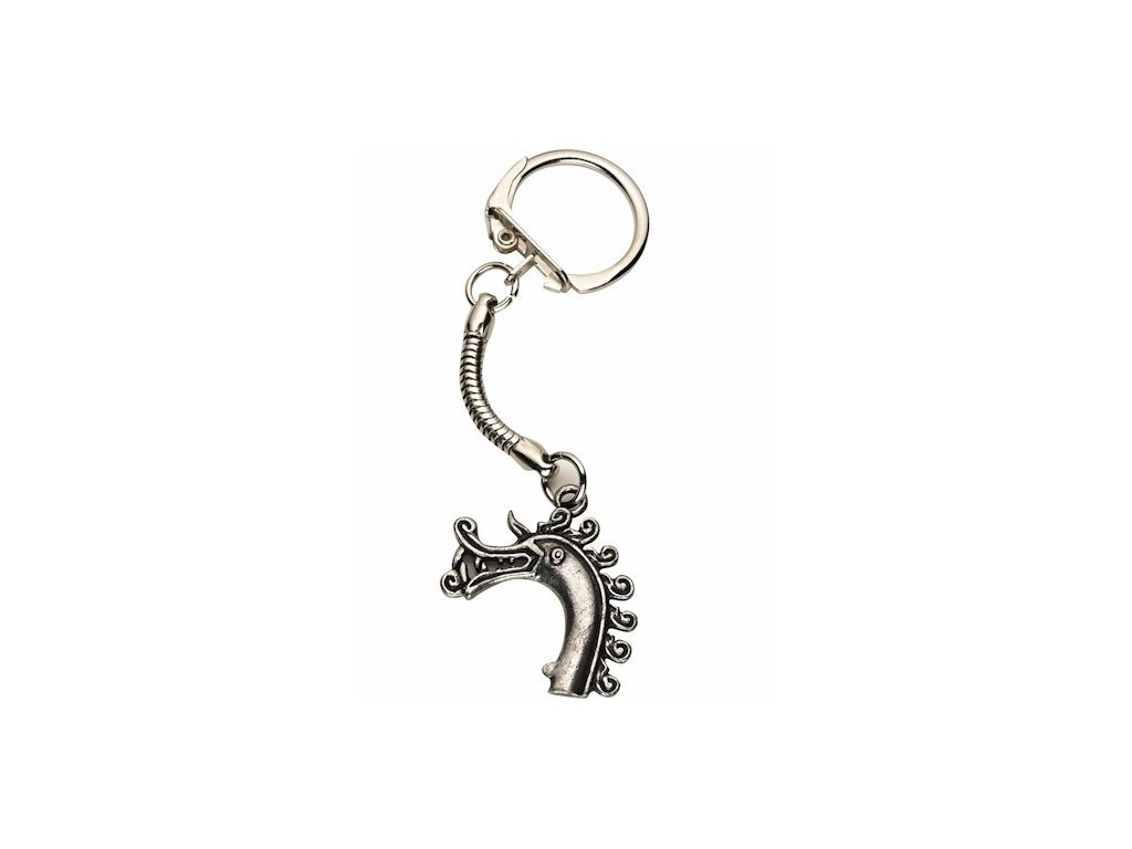 Cínová kľúčenka hlava draka sa dodáva spolu s kvalitným krúžkom na kľúče.