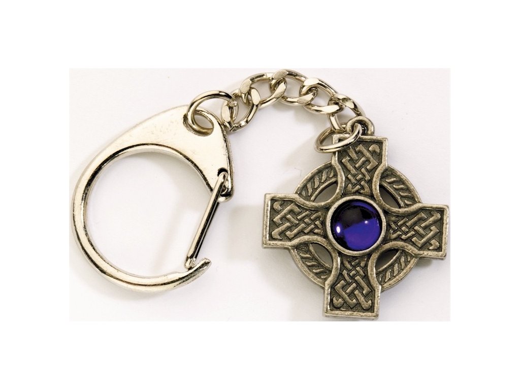 Cínová kľúčenka - kríž s nekonečnými uzlami a s kameňom v strede kríža sa dodáva spolu s kvalitným krúžkom na kľúče.