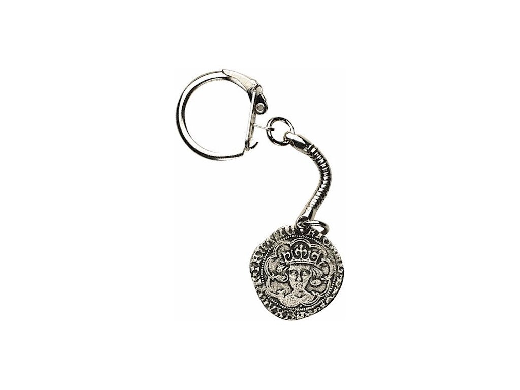 Cínová kľúčenka – kópia stredovekej mince Groat kráľa Richarda III. sa dodáva s kvalitným krúžkom na kľúče.