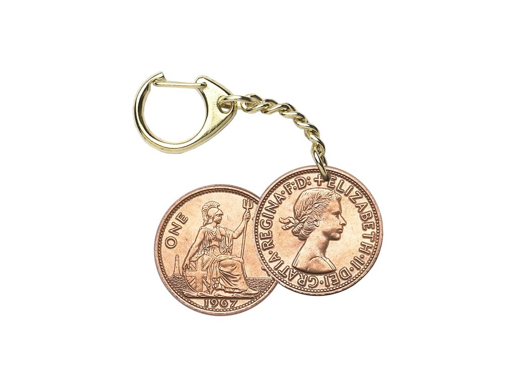 Pôvodná minca - penny kráľovnej Alžbety II. sa dodáva spolu s kvalitným krúžkom na kľúče.