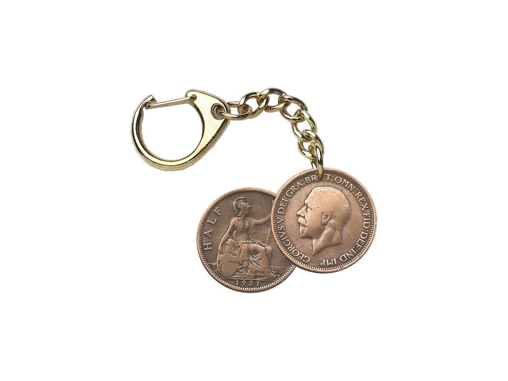 Pôvodná minca - pol penny kráľa Juraja V. sa dodáva spolu s kvalitným krúžkom na kľúče.
