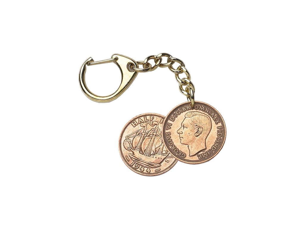 Pôvodná minca - pol penny kráľa Juraja VI. sa dodáva spolu s kvalitným krúžkom na kľúče.