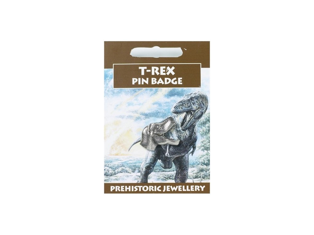 Tento odznak hlavy T-Rexa je vyrobený z bezolovnatého cínu. Na informačnej kartičke je na prednej strane farebný obrázok T- Rexa a na zadnej strane sú historické údaje o ňom.