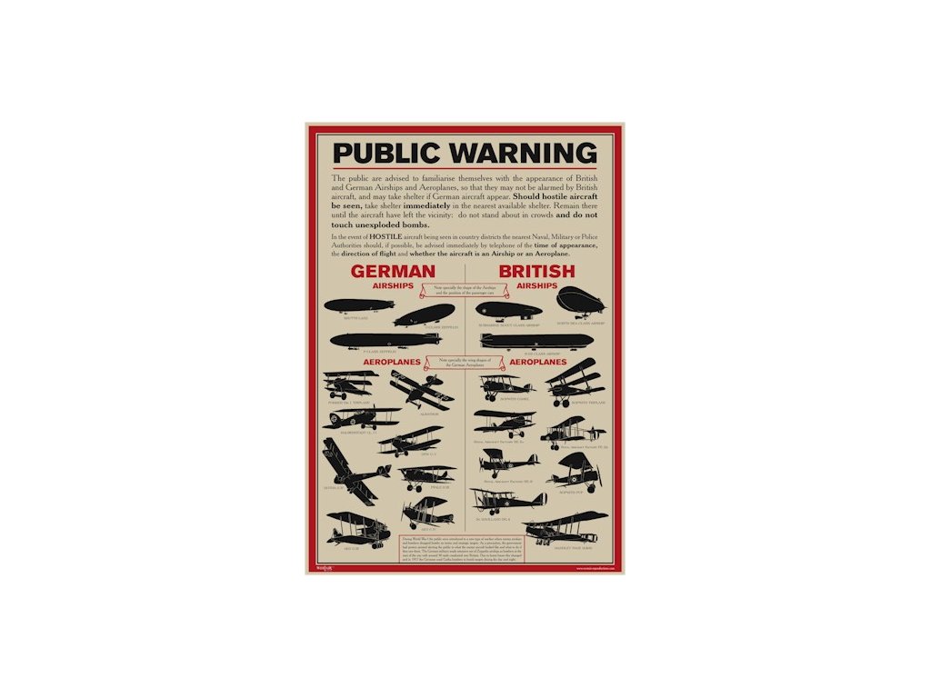 Plagát - Identifikácia lietadiel z I. Svetovej vojny bol vydávaný počas I. Svetovej vojny, aby sa verejnosť mohla oboznámiť s výskytom britských a nemeckých lietadiel v britskom vzdušnom priestore.