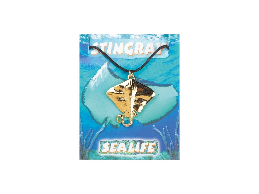 Pozlátený cínový prívesok - raja sa dodáva na povoskovanej šnúrke. Na zadnej strane informačnej kartičky je popis raje a miesto jej výskytu.