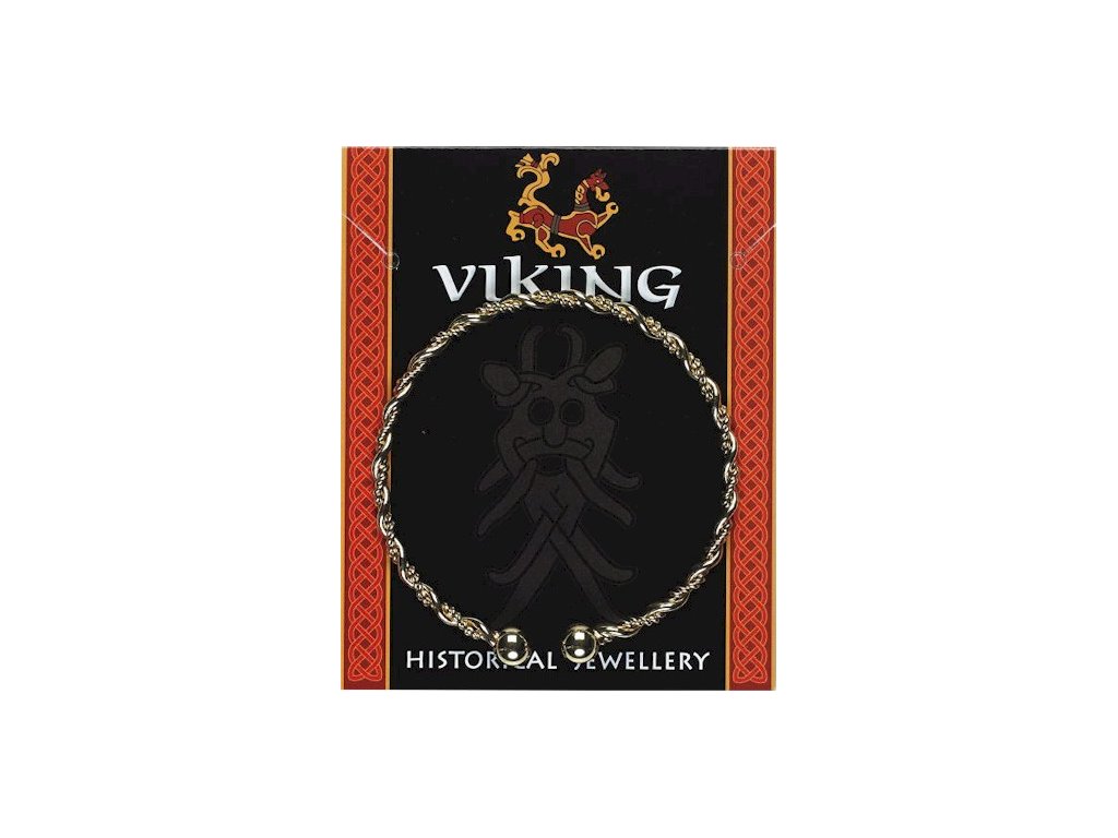 Tento vikingský náramok so skrúteným vzorom je vyrobený z kovu a pozlátený.
