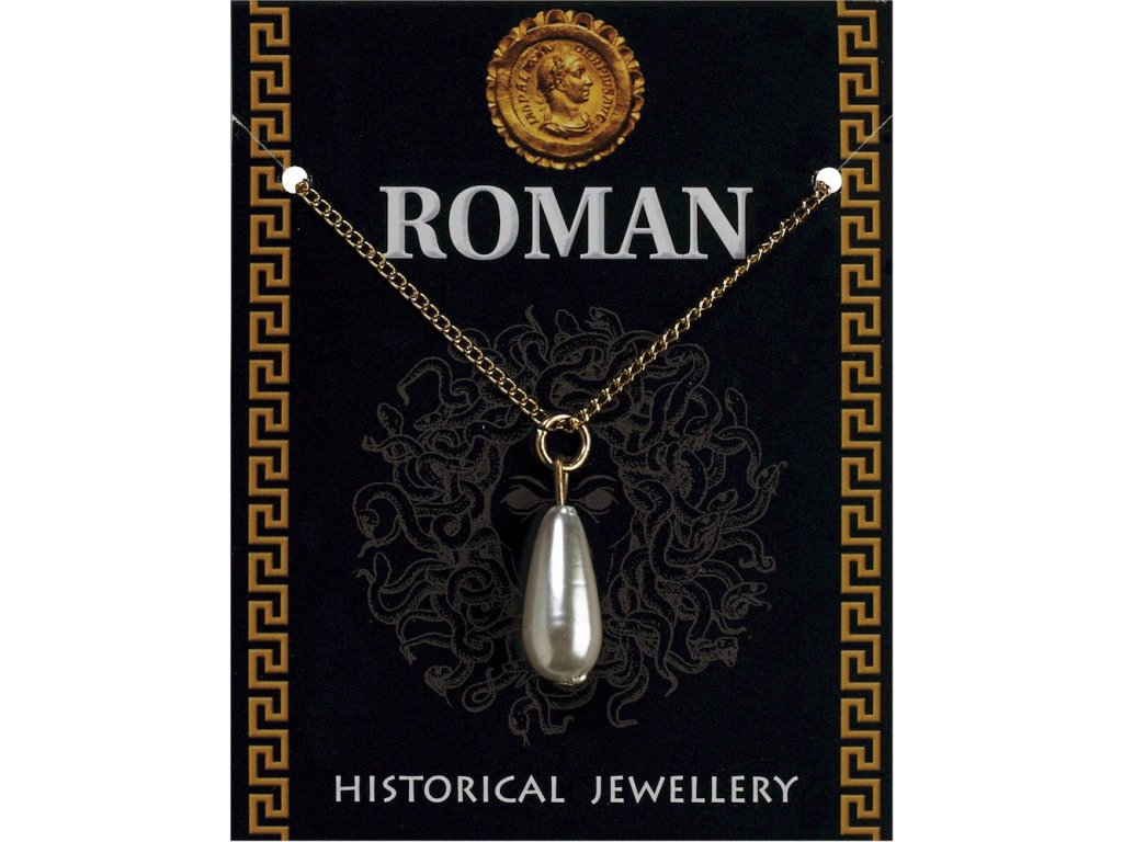 Rímsky perlový prívesok s retiazkou sa dodáva spolu s postriebrenou retiazkou. Na informačnej kartičke je popis dôvodov, prečo starovekí Egypťania nosili šperky.