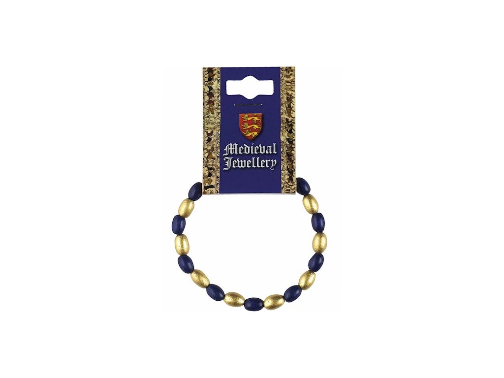 Tento náramok je inšpirovaný stredovekými šperkami. Náramok tvoria drevené koráliky modrej a zlatej farby.